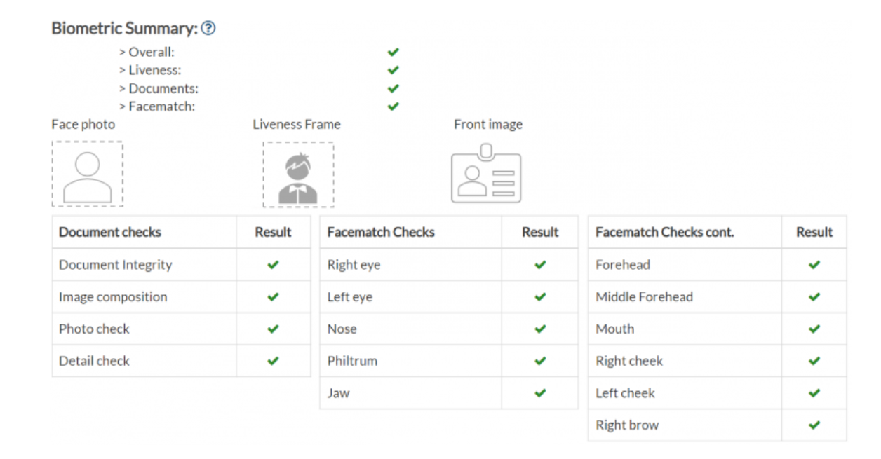 Biometric ID Summary - checks the document and matches facial measurements